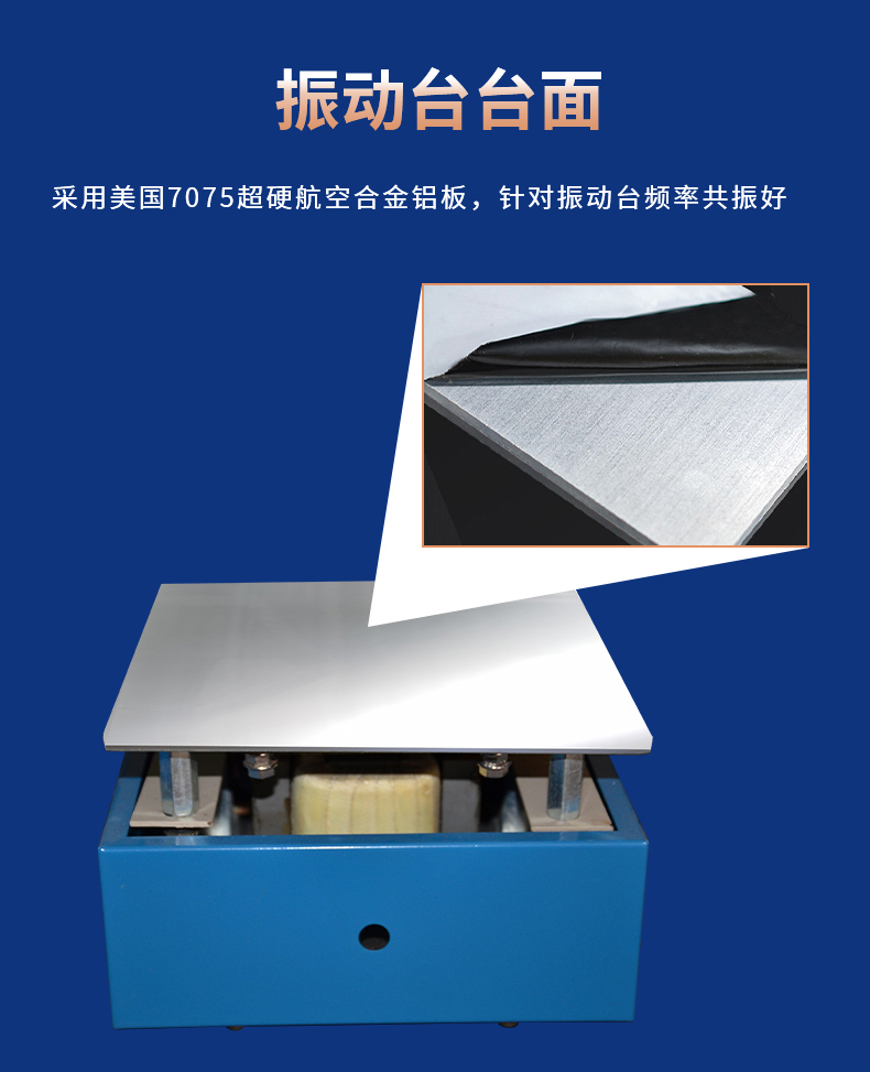 2、勤卓品牌電磁式振動(dòng)臺(tái)的臺(tái)面采用超硬航空合金鋁板,針對(duì)振動(dòng)臺(tái)頻率共振好;激振器采用日本優(yōu)質(zhì)矽鋼片,臺(tái)灣優(yōu)質(zhì)銅線;彈簧鋼片采用日制彈簧鋼片,該鋼片在對(duì)振動(dòng)臺(tái)頻響共振最好,恢復(fù)性最高,長(zhǎng)期工作不變形】。