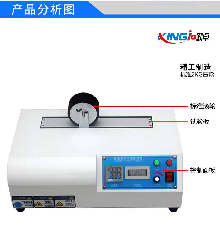 本產(chǎn)品用于膠粘帶剝離強(qiáng)度、持粘性等試驗(yàn)用試件的制備。以固定的壓力及速度,將膠粘帶試樣規(guī)范平整,均勻的粘著于標(biāo)準(zhǔn)的試驗(yàn)基材上。CNS-11888、PSTC-8雙工位電動(dòng)碾壓滾輪試驗(yàn)機(jī)參數(shù):滾輪荷重:2000g±5g 滾輪尺寸:¢84mm×45mm橡膠硬度:Hs80±5(邵氏A型)厚度:約6mm輾壓速度:300mm/min輪數(shù):2組