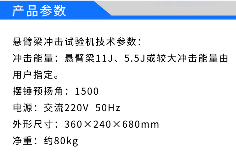 沖擊能量:懸臂梁11J、5.5J或較大沖擊能量由用戶指定。